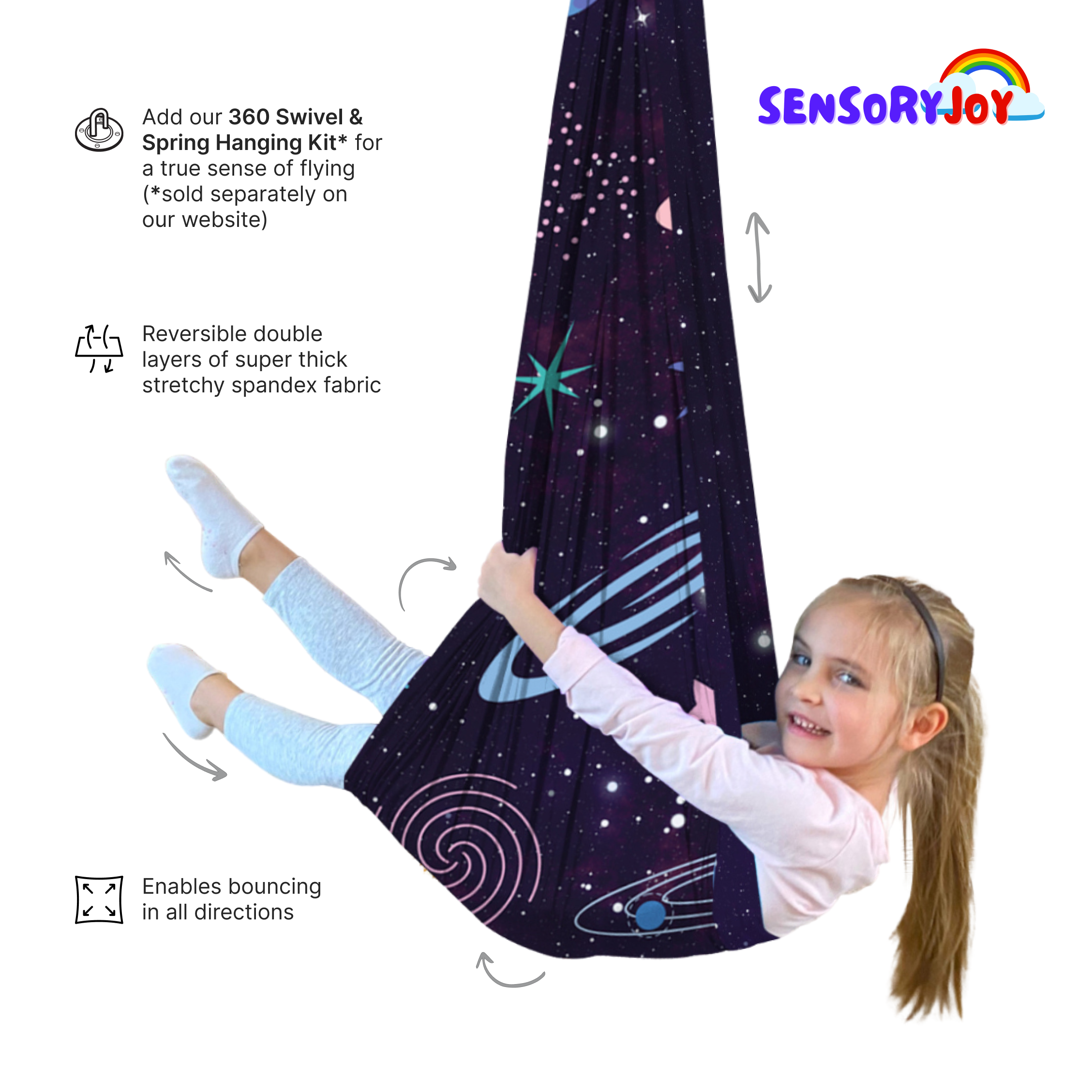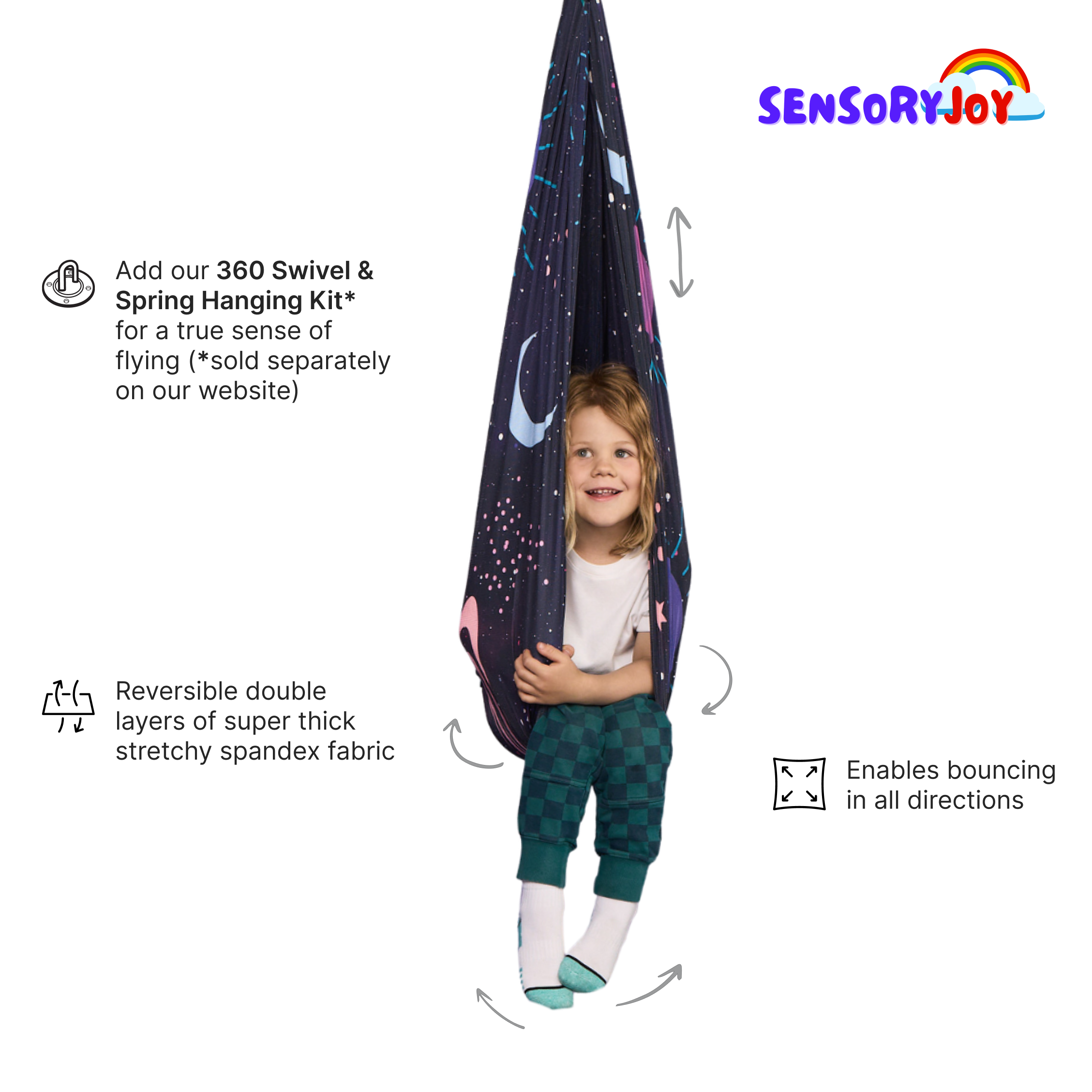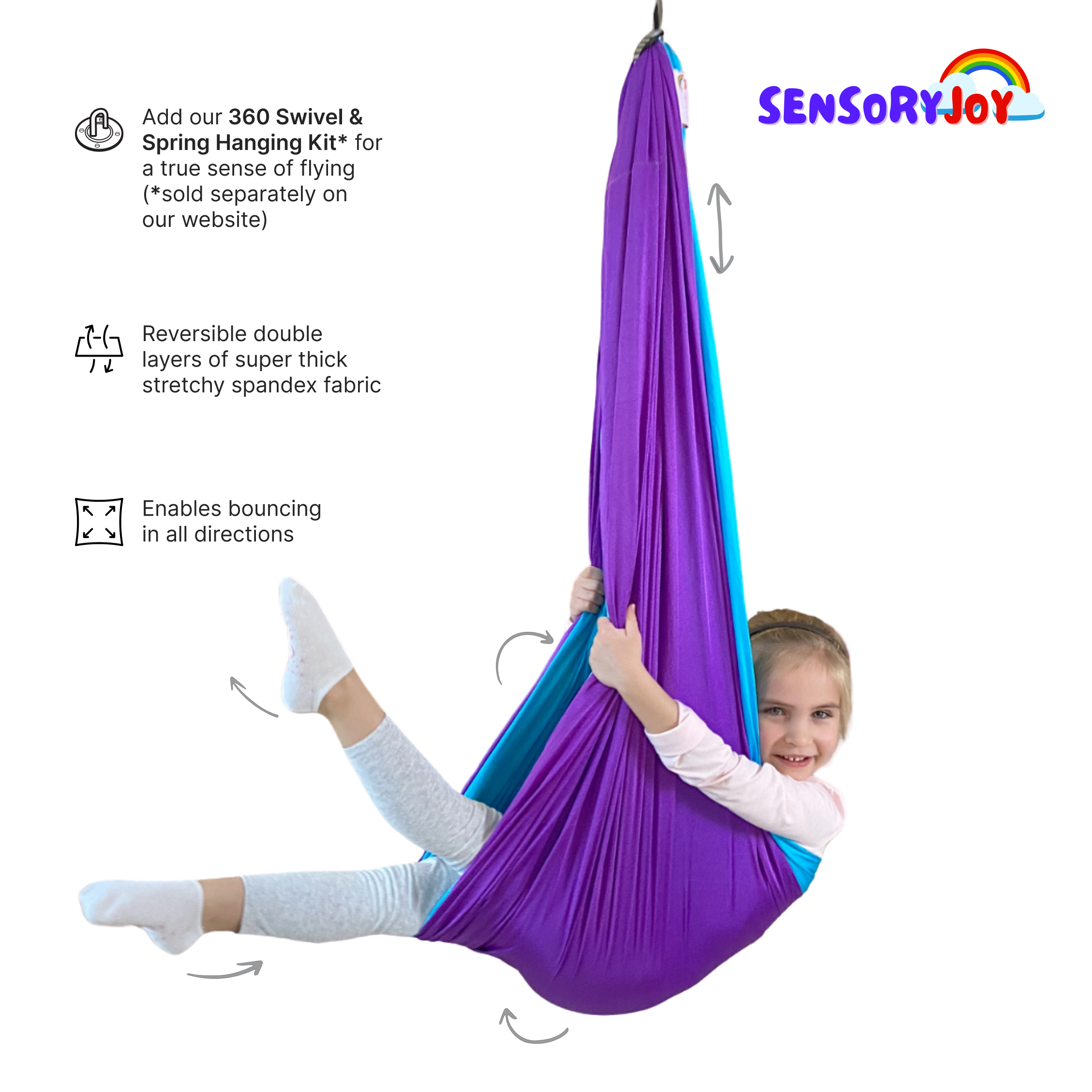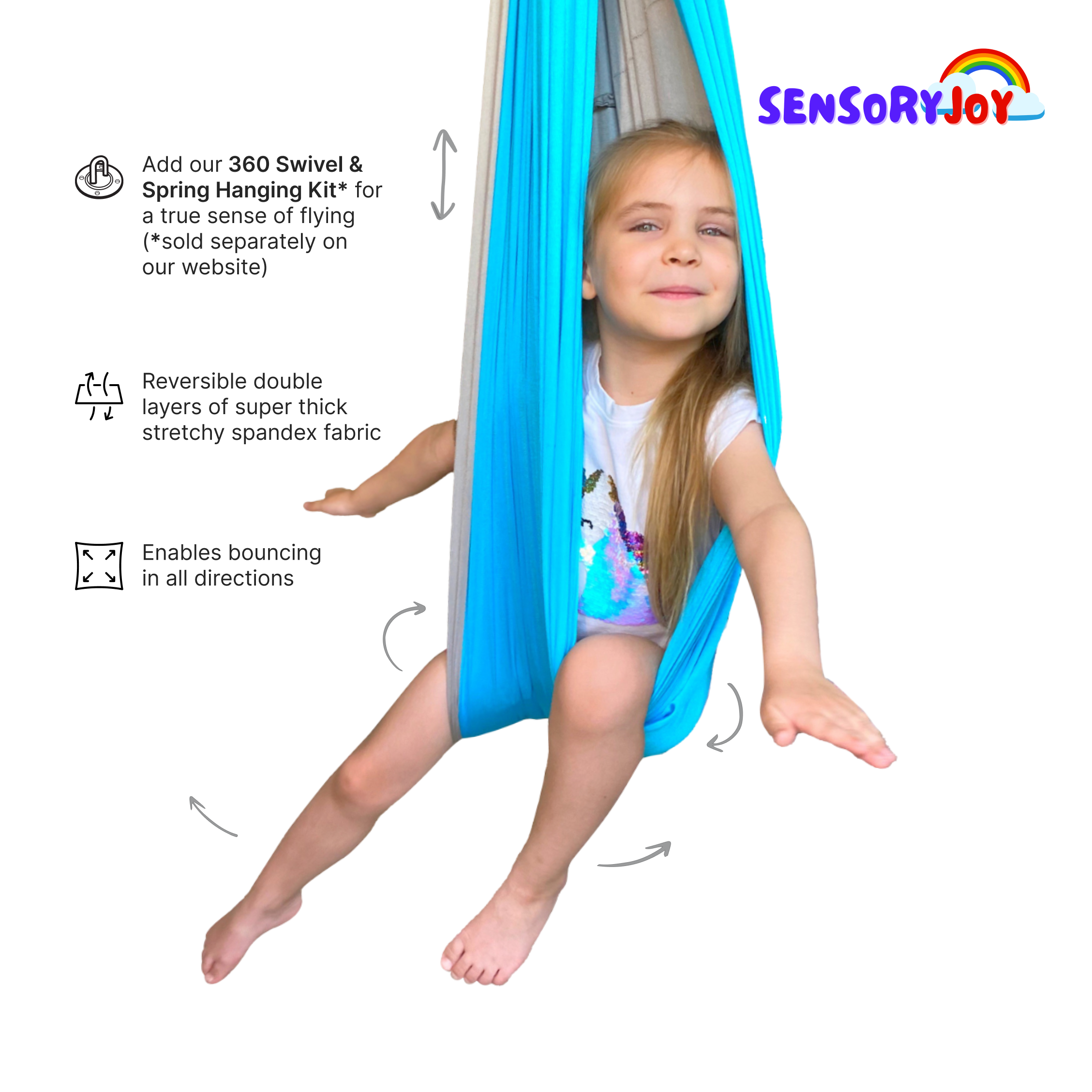 "This swing was the answer! My special needs daughter goes through moments of meltdowns, and her behavior is uncontrollable. It's been two months since my husband hung it in her room, and she goes to it every day. The material hugs and calms her, giving her the compression she needs when overstimulated. For a special needs parent, this swing is a MUST! It is very worth the investment."