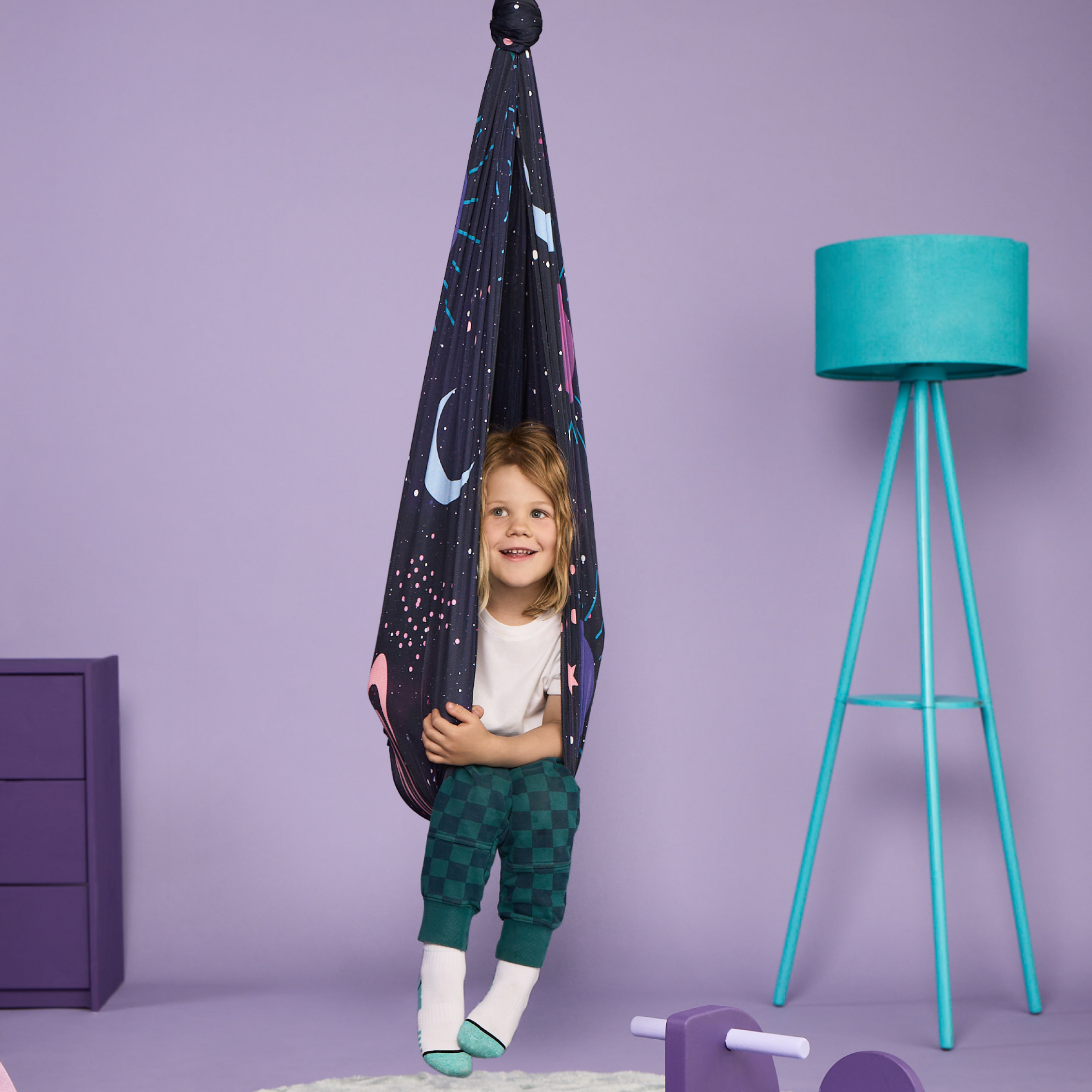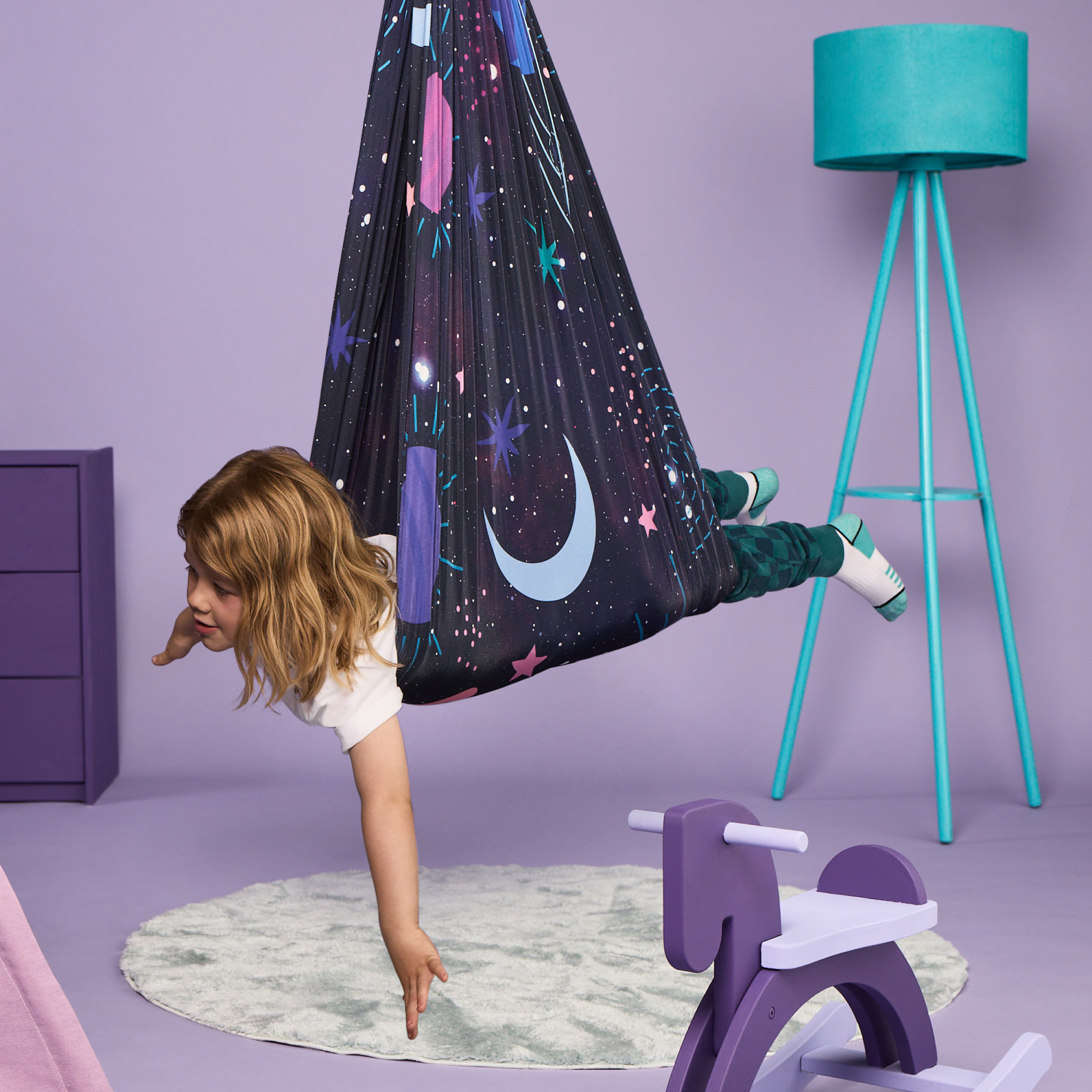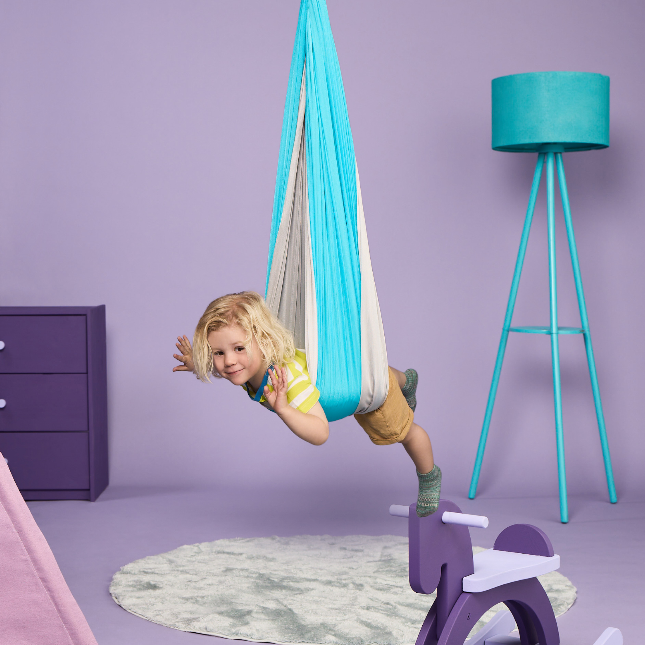 Occupational therapists have been using swings like this for years to help children cope with sensory challenges, and now you can reap the benefits in your own home.