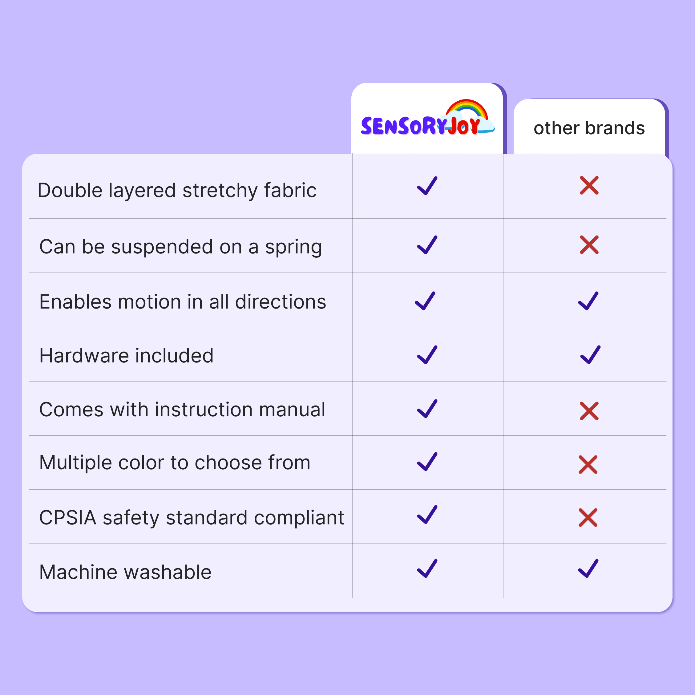 "After raising our own sensory kids, we wanted a solution that was just as effective as the ones used in occupational therapy clinics, but in our own home. That's when we created the Sensory Joy™ Cuddle Swing."